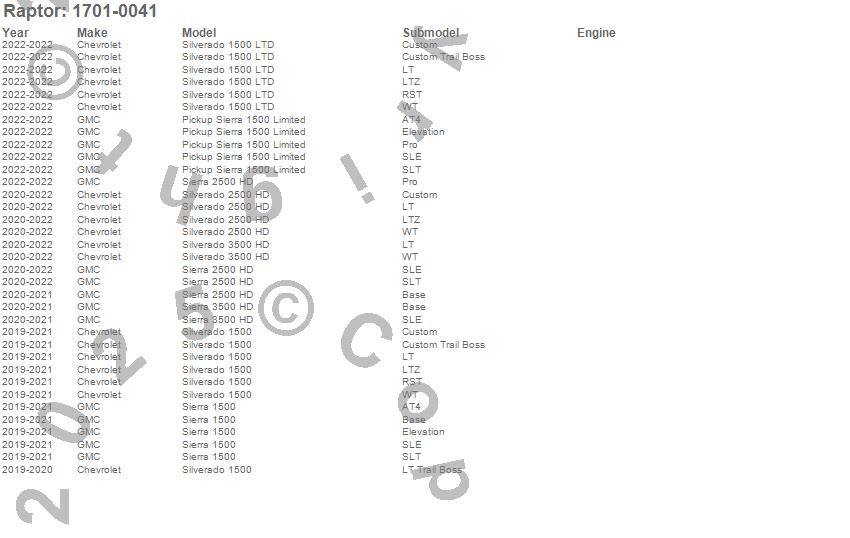 Brand: RaptorPart Number: 1701-0041Running Board Type: 6 in. - Rocker Panel Mount - AluminumUPC: 813443024720