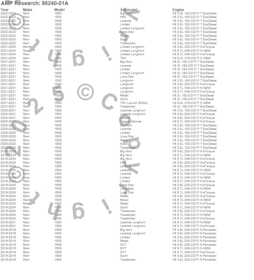 Below is an abbreviated list of applications for the PowerStep Smart Series.1500, Ram, 2024, 2023, 2022, 2021, 2020, 2019