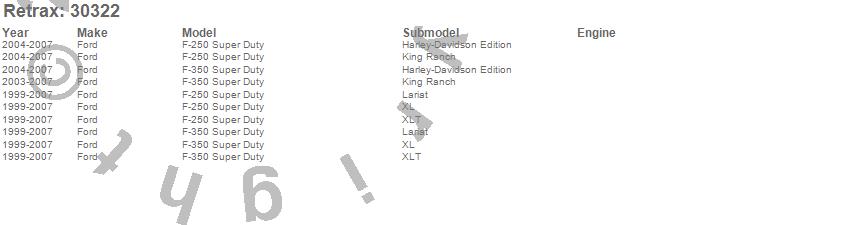 Below is an abbreviated list of applications for the Retrax IX Tonneau Cover.F-250 Super Duty, F-350 Super Duty, Ford, 2007, 2006, 2005, 2004, 2003, 2002, 2001, 2000, 1999