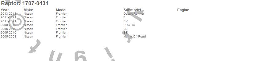 Below is an abbreviated list of applications for the OEM Running Boards.Frontier, Nissan, 2021, 2020, 2019, 2018, 2017, 2016, 2015, 2014, 2013, 2012, 2011, 2010, 2009, 2008, 2007, 2006, 2005