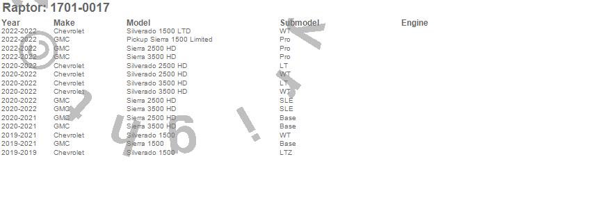 Brand: RaptorPart Number: 1701-0017Running Board Type: 6 in. - Rocker Panel Mount - Aluminum - w/ BracketsUPC: 813443027783