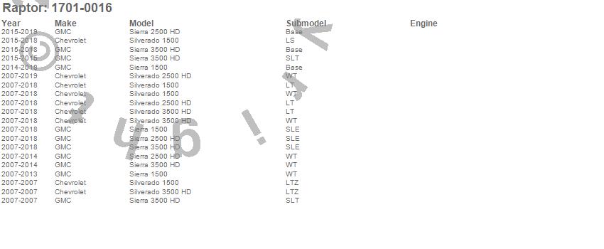 Brand: RaptorPart Number: 1701-0016Running Board Type: 6 in. - Rocker Panel Mount - Aluminum - w/ BracketsUPC: 813443027769