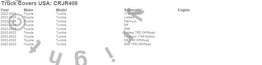 Below is an abbreviated list of applications for the American Work Cover JR..Tundra, Toyota, 2024, 2023, 2022