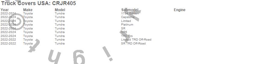 Below is an abbreviated list of applications for the American Work Cover JR..Tundra, Toyota, 2024, 2023, 2022