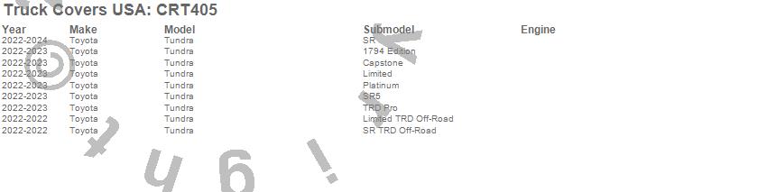 Below is an abbreviated list of applications for the American Work Cover.Tundra, Toyota, 2024, 2023, 2022