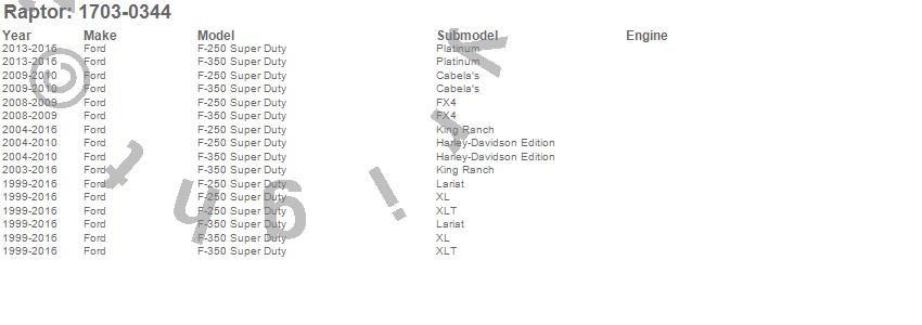 Brand: RaptorPart Number: 1703-0344Running Board Type: 6 in. - Rocker Panel Mount - AluminumUPC: 810075531763
