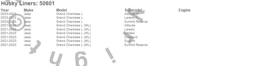 Below is an abbreviated list of applications for the X-act Contour Floor Liner.Grand Cherokee L, Grand Cherokee L (WL), Jeep, 2023, 2022, 2021