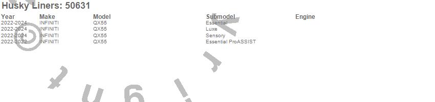 Below is an abbreviated list of applications for the X-act Contour Floor Liner.QX55, INFINITI, 2025, 2024, 2023, 2022