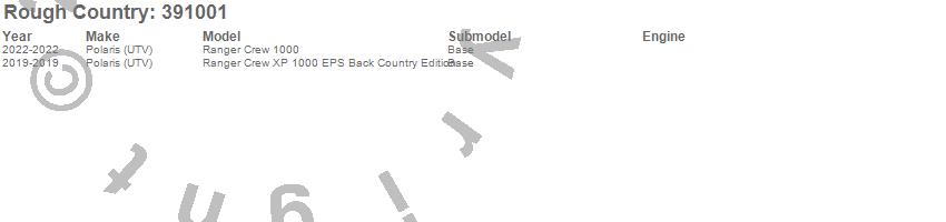 Below is an abbreviated list of applications for the Suspension Lift Kit.Ranger Crew 1000, Ranger Crew XP 1000 EPS Back Country Edition, Polaris (UTV), 2022, 2019