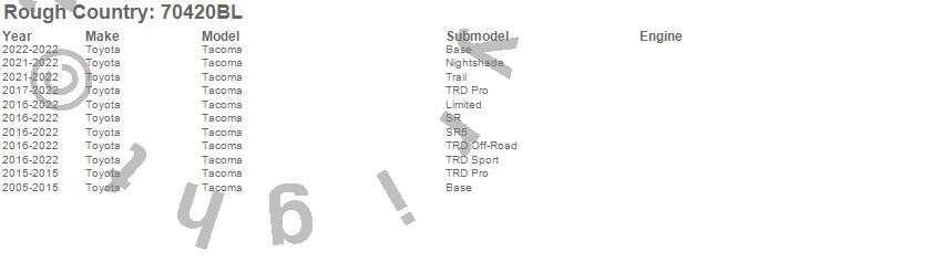 Below is an abbreviated list of applications for the Black Series LED Kit.Tacoma, Toyota, 2022, 2021, 2020, 2019, 2018, 2017, 2016, 2015, 2014, 2013, 2012, 2011, 2010, 2009, 2008, 2007, 2006, 2005