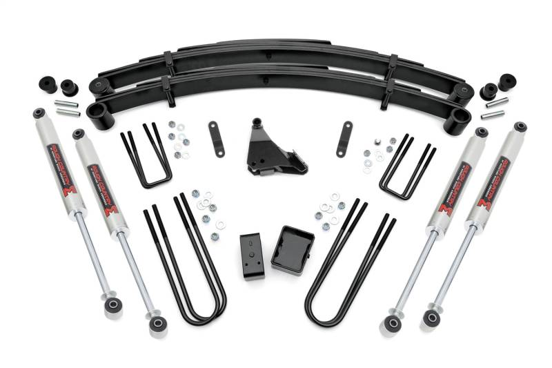 Buy this Suspension Lift Kit w/Shocks Rough Country 49640 6 in. Lift - Rear Block - Incl. M1 Series Shock Absorber - Lifted Leaf Spring - Sway-Bar/Track Bar Drop Bracket - Pitman Arm - 4 in Lift Block - U-Bolts here at SVCustoms.com an authorized Rough Country Lift Kit-Suspension w/Shock dealer and distributor.