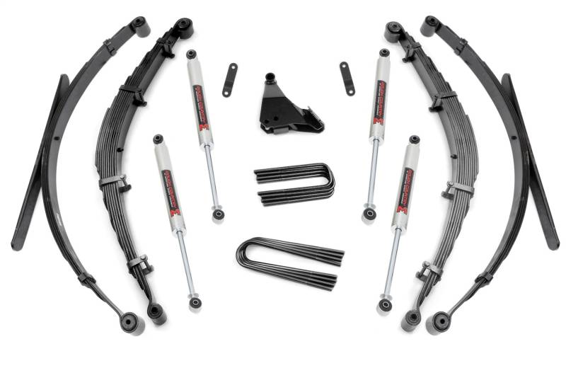 Buy this Suspension Lift Kit w/Shocks Rough Country 50140 4 in. Lift - Rear Spring - Incl. M1 Series Shock Absorber - Lifted Leaf Spring - Sway-Bar/Track Bar Drop Bracket - U-Bolts here at SVCustoms.com an authorized Rough Country Lift Kit-Suspension w/Shock dealer and distributor.