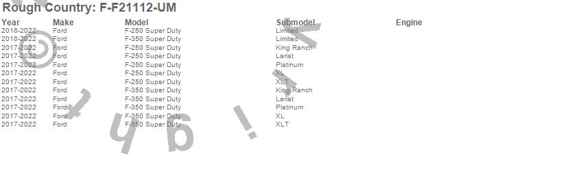 Brand: Rough CountryPart Number: F-F21112-UMFender Flare Type: Black - 4 PiecesUPC: 840269920202
