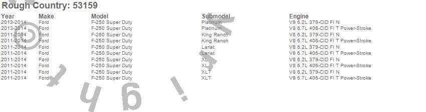 Brand: Rough CountryPart Number: 53159Lift Kit-Suspension w/Shock Type: 6 in. Lift - Diesel - No Overload Springs - Coilover Vertex ShocksUPC: 840269914508