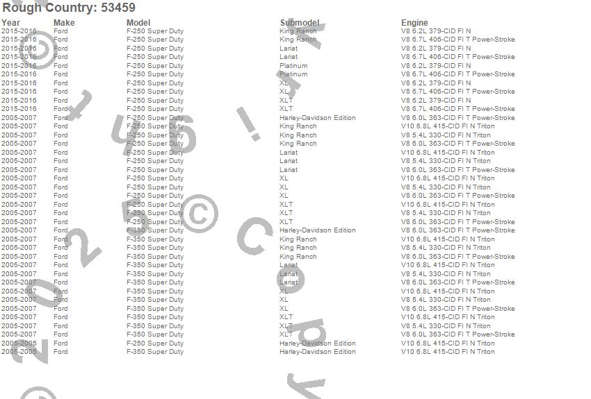 Brand: Rough CountryPart Number: 53459Lift Kit-Suspension w/Shock Type: 4.5 in. Lift - No Overload Springs - Coilover Vertex ShocksUPC: 840269919480