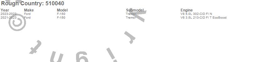Brand: Rough CountryPart Number: 510040Lift Kit-Suspension w/Shock Type: 2.5 in. Lift - Incl. M1 Loaded Struts - Lift Blocks - U-BoltsUPC: 840269917660