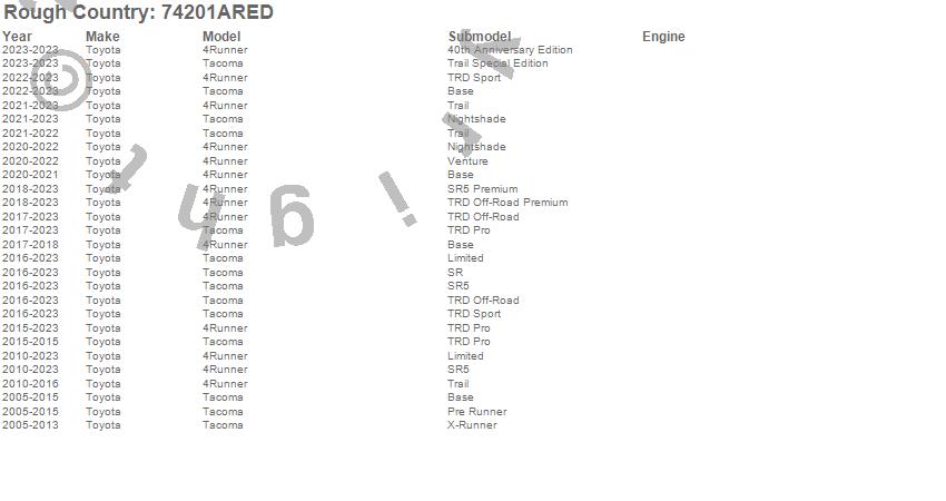 Below is an abbreviated list of applications for the Control Arm.4Runner, Tacoma, Toyota, 2024, 2023, 2022, 2021, 2020, 2019, 2018, 2017, 2016, 2015, 2014, 2013, 2012, 2011, 2010, 2009, 2008