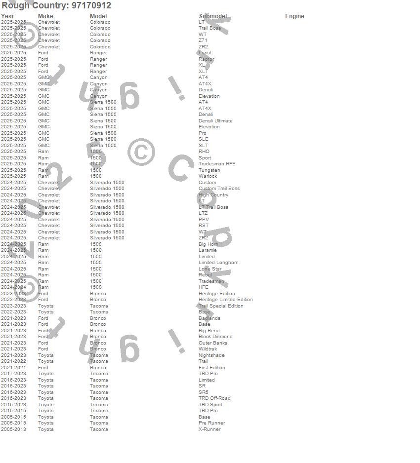 Below is an abbreviated list of applications for the Series 97 Wheel.1500, 4Runner, Bronco, Canyon, Colorado, Ranger, Sierra 1500, Silverado 1500, Suburban, Tacoma, Tahoe, Chevrolet, Ford, GMC, Ram, Toyota, 2025, 2024, 2023, 2022