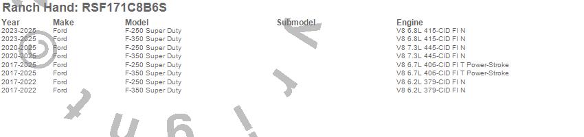 Brand: Ranch HandPart Number: RSF171C8B6SNerf/Step Bar (Wheel to Wheel) Type: 6 StepUPC: 848917009392