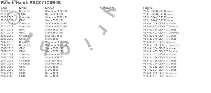 Brand: Ranch HandPart Number: RSC071C6B6SNerf/Step Bar (Wheel to Wheel) Type: 6 StepUPC: 848917009767