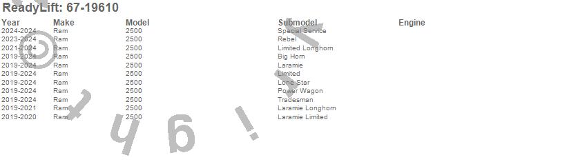 Below is an abbreviated list of applications for the Track Bar Bracket.2500, Ram, 2025, 2024, 2023, 2022, 2021, 2020, 2019