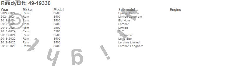 Below is an abbreviated list of applications for the Coil Spring Lift Kit.3500, Ram, 2024, 2023, 2022, 2021, 2020, 2019