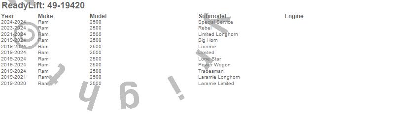 Below is an abbreviated list of applications for the Coil Spring Lift Kit.2500, Ram, 2024, 2023, 2022, 2021, 2020, 2019