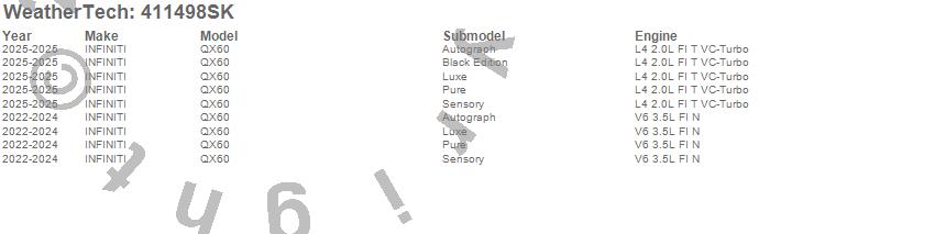 Below is an abbreviated list of applications for the Cargo Liner w/Bumper Protector.QX60, INFINITI, 2026, 2025, 2024, 2023, 2022