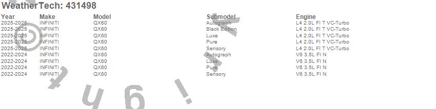 Below is an abbreviated list of applications for the Cargo Liner.QX60, INFINITI, 2026, 2025, 2024, 2023, 2022