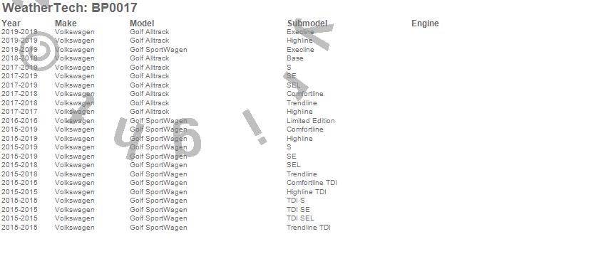 Below is an abbreviated list of applications for the BumperTopper.Golf Alltrack, Golf SportWagen, Volkswagen, 2019, 2018, 2017, 2016, 2015