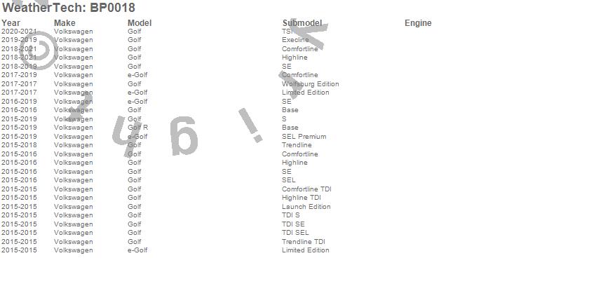 Below is an abbreviated list of applications for the BumperTopper.e-Golf, Golf, Golf R, Volkswagen, 2021, 2020, 2019, 2018, 2017, 2016, 2015