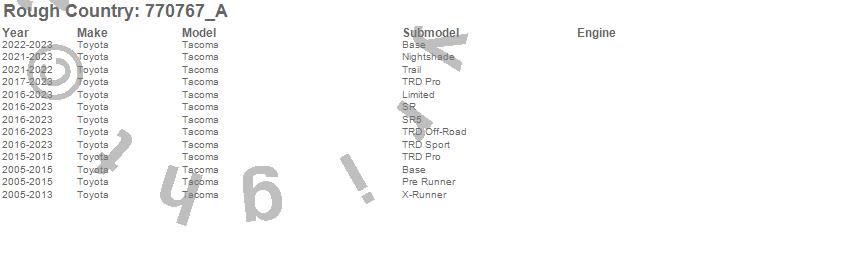 Brand: Rough CountryPart Number: 770767_AShock Absorber Type: Rear - 6-7 in. Lift - 27.55 in.Extended Length - 16.85 in. Collapsed LengthUPC: 840269921575