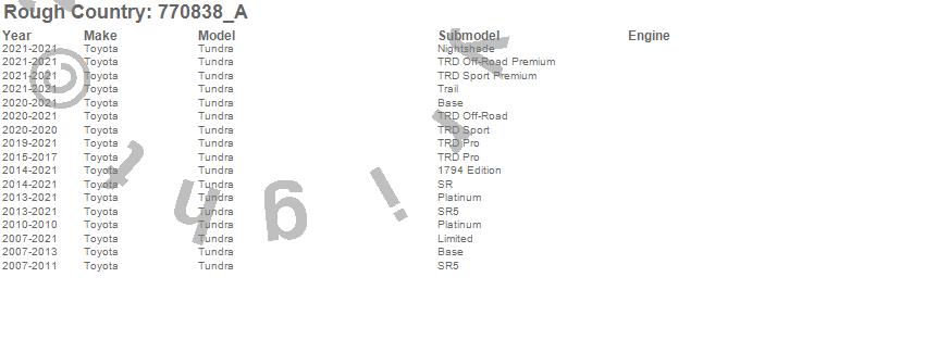 Brand: Rough CountryPart Number: 770838_AShock Absorber Type: Rear - 0-3.5 in. Lift - Monotube - 26.46 in.Extended Length - 15.59 in. Collapsed LengthUPC: 840269922183