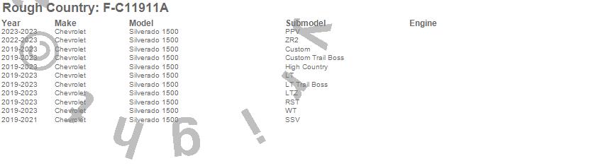 Brand: Rough CountryPart Number: F-C11911AFender Flare Type: Flat BlackUPC: 840269919190