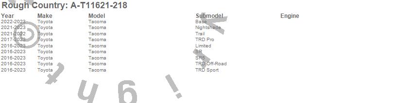 Below is an abbreviated list of applications for the Pocket Fender Flares.Tacoma, Toyota, 2023, 2022, 2021, 2020, 2019, 2018, 2017, 2016