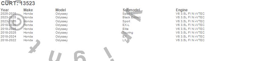 Below is an abbreviated list of applications for the Class III 2 in. Receiver Hitch.Altima, Odyssey, Honda, Nissan, 2026, 2025, 2024, 2023, 2022, 2021, 2020, 2019, 2018