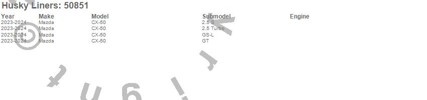 Below is an abbreviated list of applications for the X-act Contour Floor Liner.CX-50, Mazda, 2025, 2024, 2023
