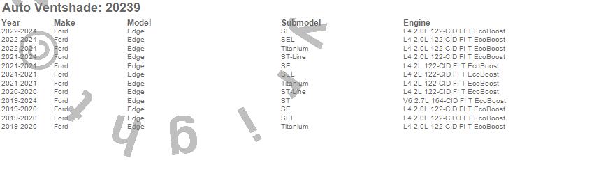 Below is an abbreviated list of applications for the Carflector Stone/Bug Deflector.Edge, Ford, 2024, 2023, 2022, 2021, 2020, 2019