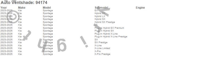 Below is an abbreviated list of applications for the Ventvisor Deflector 4 pc..Sportage, Kia, 2026, 2025, 2024, 2023