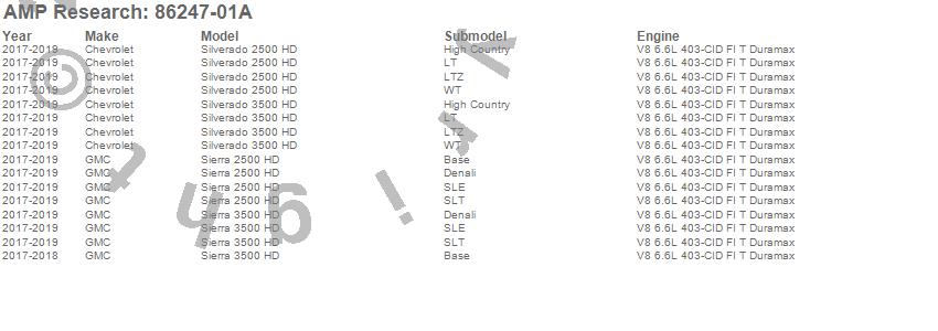 Below is an abbreviated list of applications for the PowerStep Smart Series.Sierra 2500 HD, Sierra 3500 HD, Silverado 2500 HD, Silverado 3500 HD, Chevrolet, GMC, 2019, 2018, 2017