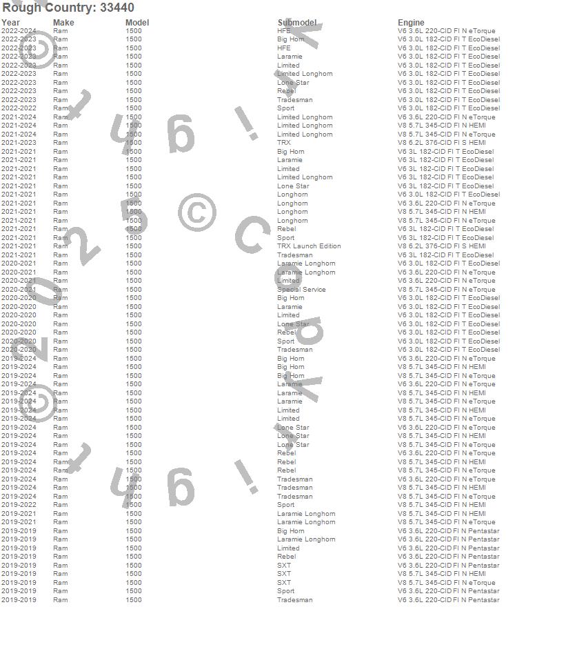 Below is an abbreviated list of applications for the Lift Kit-Suspension w/Shock.1500, Ram, 2024, 2023, 2022, 2021, 2020, 2019