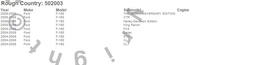 Below is an abbreviated list of applications for the Lifted M1 Struts.F-150, Ford, 2008, 2007, 2006, 2005, 2004