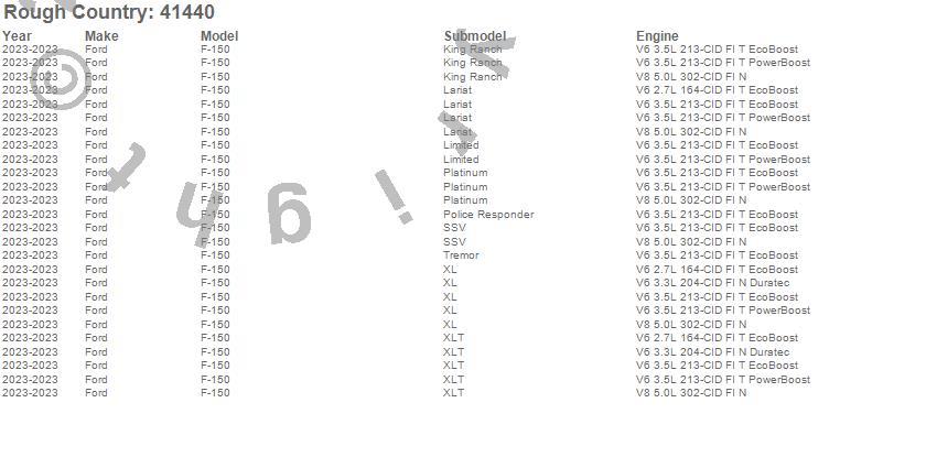 Below is an abbreviated list of applications for the Lift Kit-Suspension w/Shock.F-150, Ford, 2025, 2024, 2023