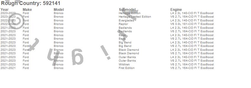 Below is an abbreviated list of applications for the Lift Kit-Suspension w/Shock.Bronco, Ford, 2025, 2024, 2023, 2022, 2021