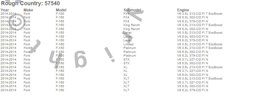 Below is an abbreviated list of applications for the Lift Kit-Suspension w/Shock.F-150, Ford, 2014