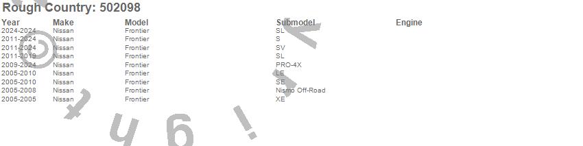 Brand: Rough CountryPart Number: 502098Suspension Strut Assembly Type: 2.5 in. Lift - Front - Loaded - PairUPC: 840269913969