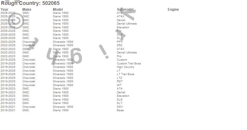 Below is an abbreviated list of applications for the Lifted M1 Struts.Sierra 1500, Silverado 1500, Chevrolet, GMC, 2025, 2024, 2023, 2022, 2021, 2020, 2019