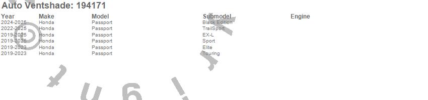 Below is an abbreviated list of applications for the Ventvisor In-Channel Deflector 4 pc..Passport, Honda, 2025, 2024, 2023, 2022, 2021, 2020, 2019
