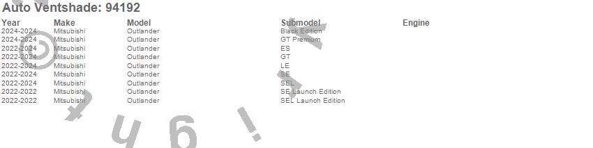 Below is an abbreviated list of applications for the Ventvisor Deflector 4 pc..Outlander, Mitsubishi, 2024, 2023, 2022