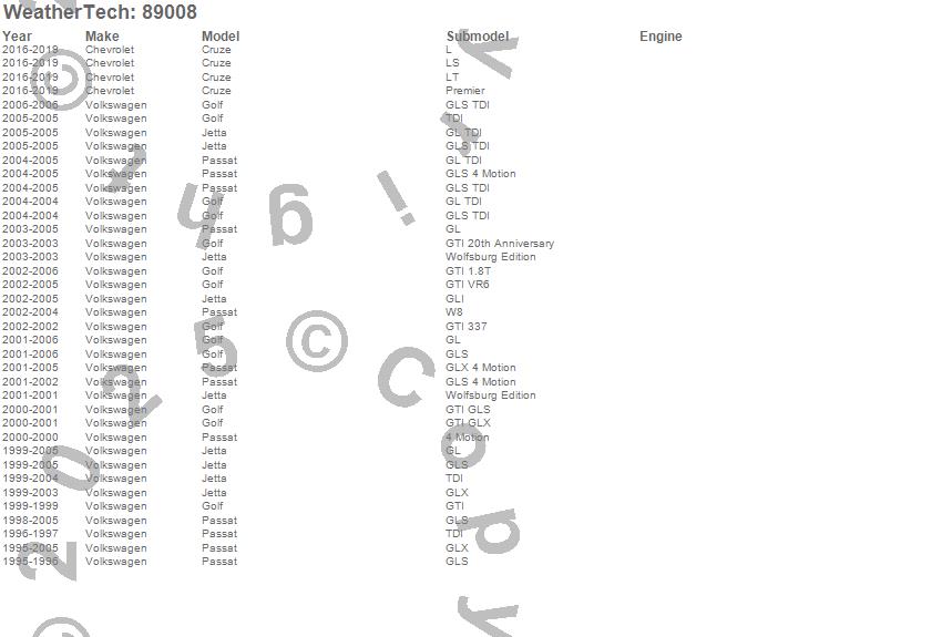 Below is an abbreviated list of applications for the Sunroof Wind Deflector.Cruze, Golf, Jetta, Passat, Chevrolet, Volkswagen, 2019, 2018, 2017, 2016, 2006, 2005, 2004, 2003, 2002, 2001, 2000, 1999, 1998, 1997